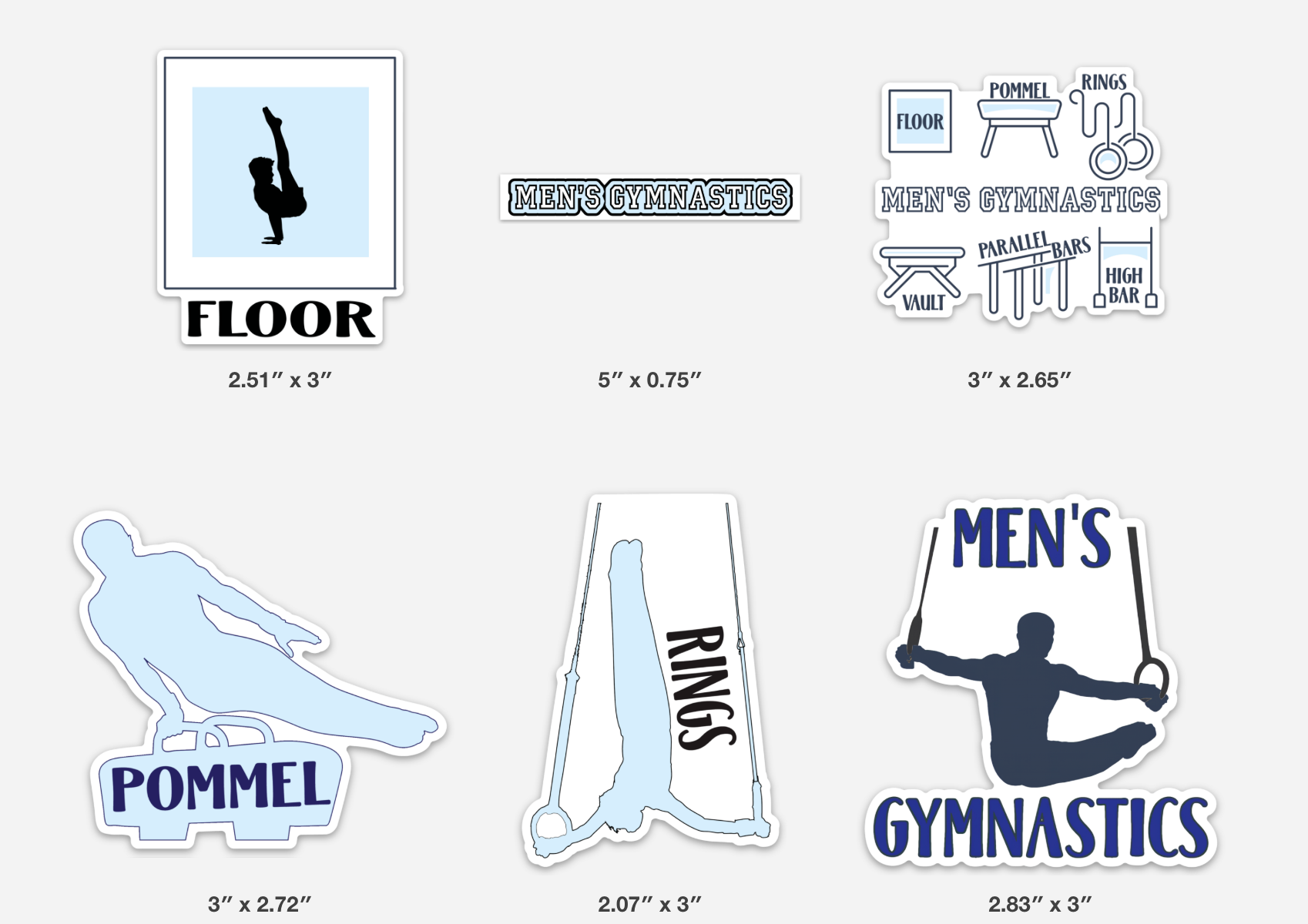 Pack includes 6 unique men’s gymnastics stickers